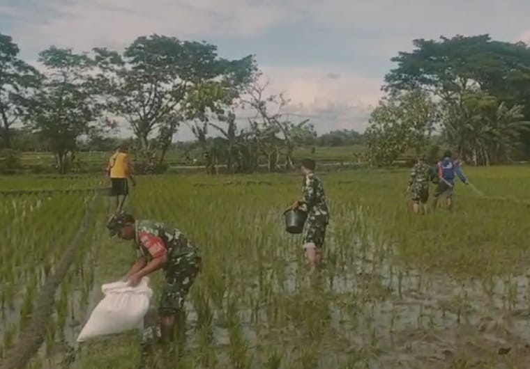 Kegiatan yang dilakukan Babinsa dalam pendampingan pemupukan ini adalah sebagai upaya untuk meningkatkan hasil panen padi petani guna mencapai swasembada pangan nasional.