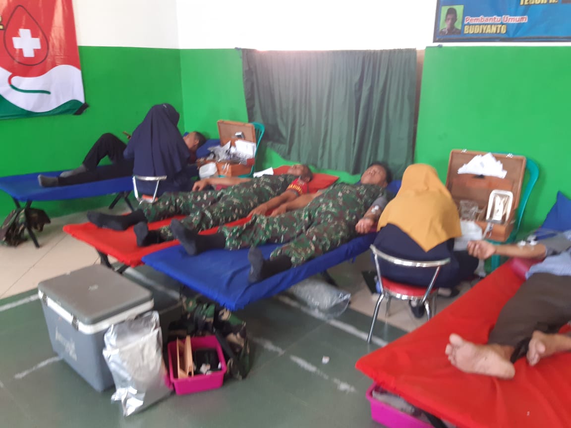 Pelda Raphael Batituud Koramil 14 / Mondokan beserta satu orang anggota, melaksanakan bakti sosial Donor Darah di Gedung MTA Cabang 2 Mondokan dk Sumberagung Rt 26 ds Jekani kec Mondokan, Selasa (24/09/19 ).