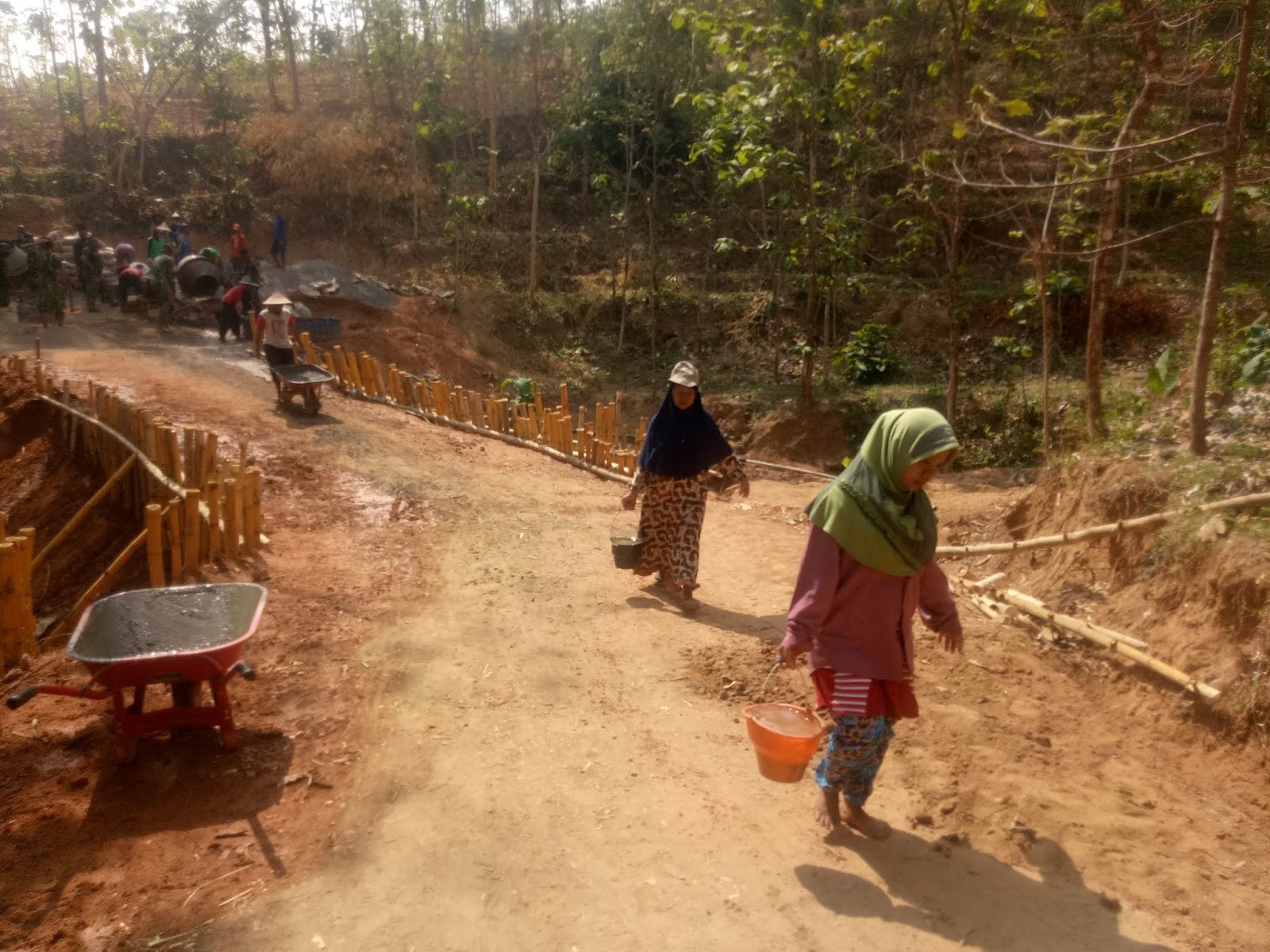karsini, mereka ikut juga dalam pengerjaan pengecoran jalan desanya. Mereka