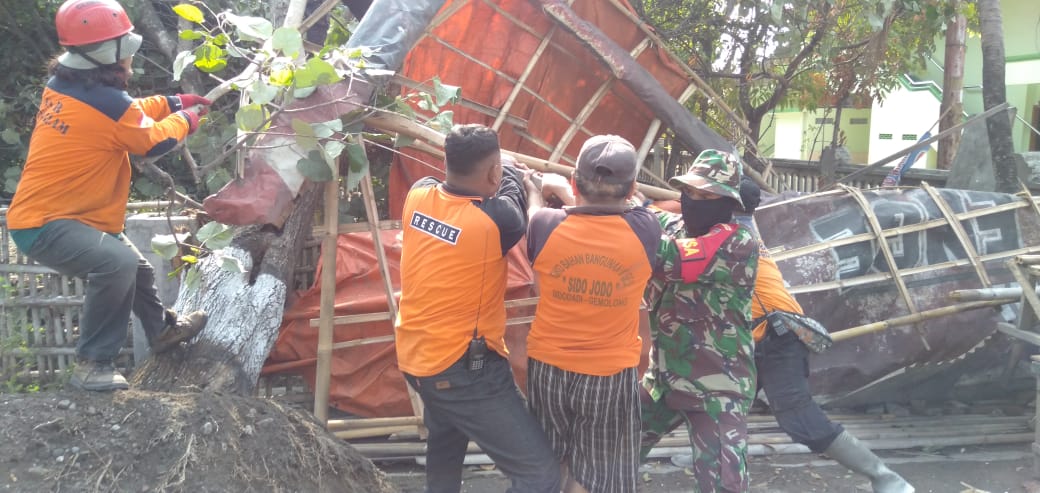 Kodim Sragen – Anggota Koramil Gemolong Bantu Warga Bersihkan Puing Puing Akibat Terjangan Puting Beliung