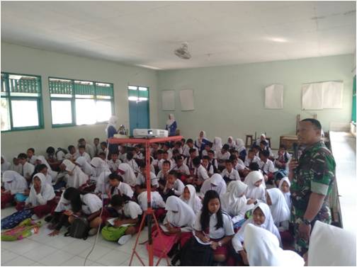 Senin, 15 Juli 2019, pukul 08.30 s.d 09.30 Wib bertempat di Aula SMP N 2 Sukodono alamat Dk.Mranggen Ds.Jatitengah, Kec.Sukodono Serma Suwardi (Bati Wanwil) dan Sertu Anto Joko Purnomo (Babinsa Ds.Karanganom) anggota Koramil 13/Sukodono mengisi materi Wawasan Kebangsaan dalam rangka Masa Pengenalan Lingkungan Sekolah siswa-siswi kelas VII SMP N 2 Sukodono TA 2019.