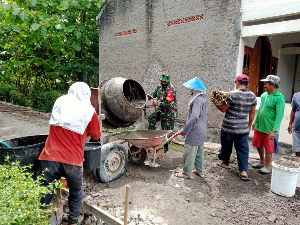Kodim SragenAtasi Kesulitan Rakyat, Babinsa Bantu Pengecoran Jalan Kampung