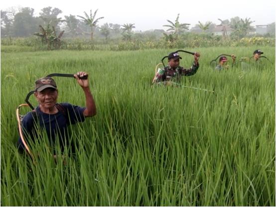 melaksanakan upsus pendampingan pertanian dengan kegiatan penyemprotan pada tanaman padi varietas IR 64 super Masa
