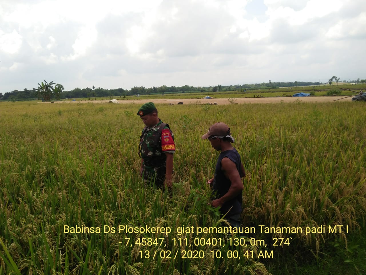 Kamis, 13 Februari 2020 Serma Suyatno Babinsa desa Plosokerep Koramil 02/Karangmalang melaksanakan pendampingan pemantauan tanaman padi MT I milik Mitro ( 56 ) Di dk Sumber agung Ds Plosokerep kec Karangmalang.