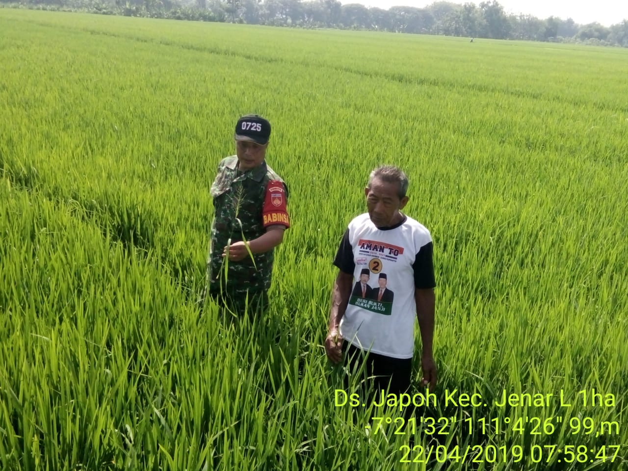 Senin, 22 April 2019 Koramil-11/Jenar Pukul 08.10 s.d 08.45 Wib, Sertu Susanto Babinsa Japoh anggota Koramil-11/Jenar melaksanakan pendampingan dan monitoring Upsus MT.II di persawahan milik Bp. Sutrisno Dk. Sumberan RT.06 Desa Japoh Kec.Jenar.