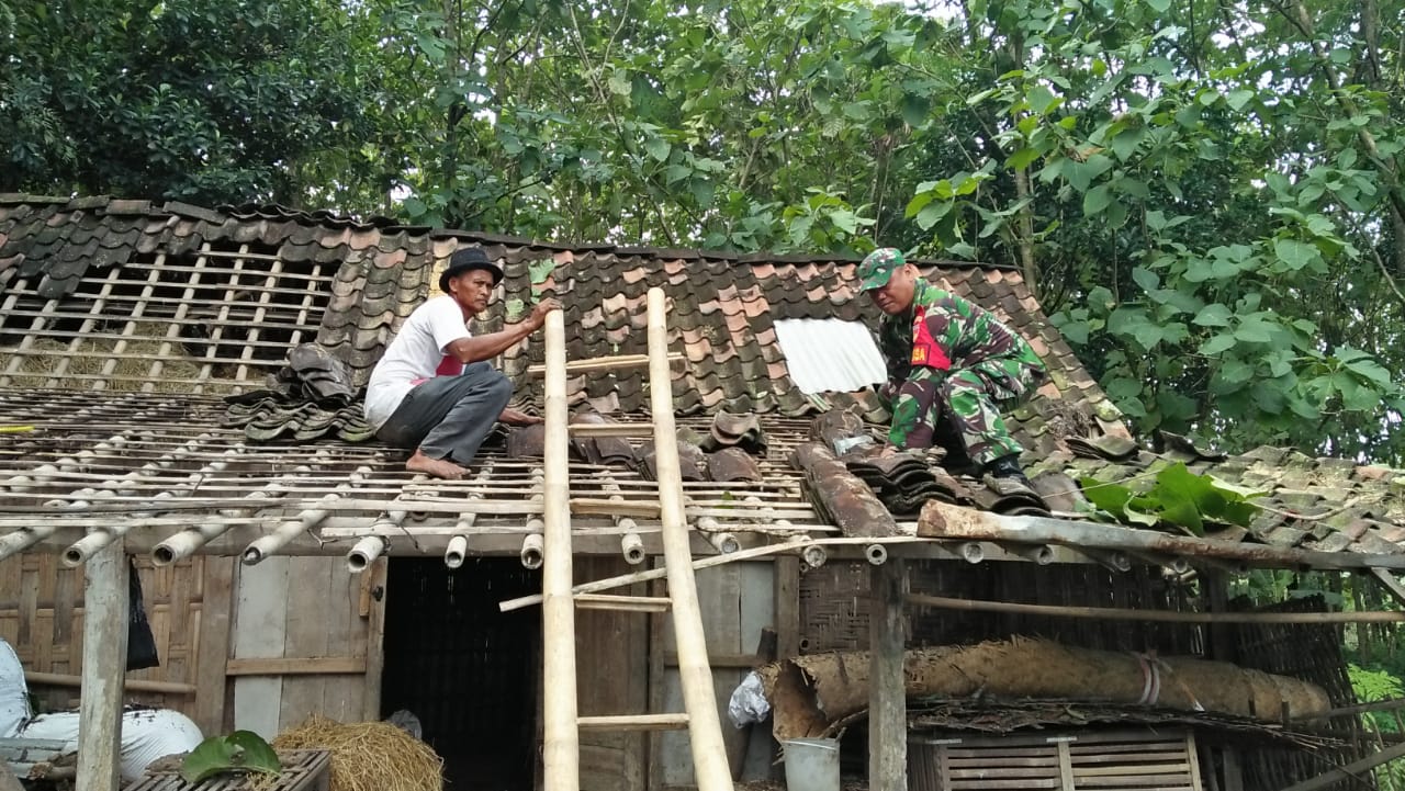 Kodim Sragen – Babinsa Jurangjero Bantu Rumah Warga Yang Rusak Akibat Hujan Dan Angin Puting Beliaung
