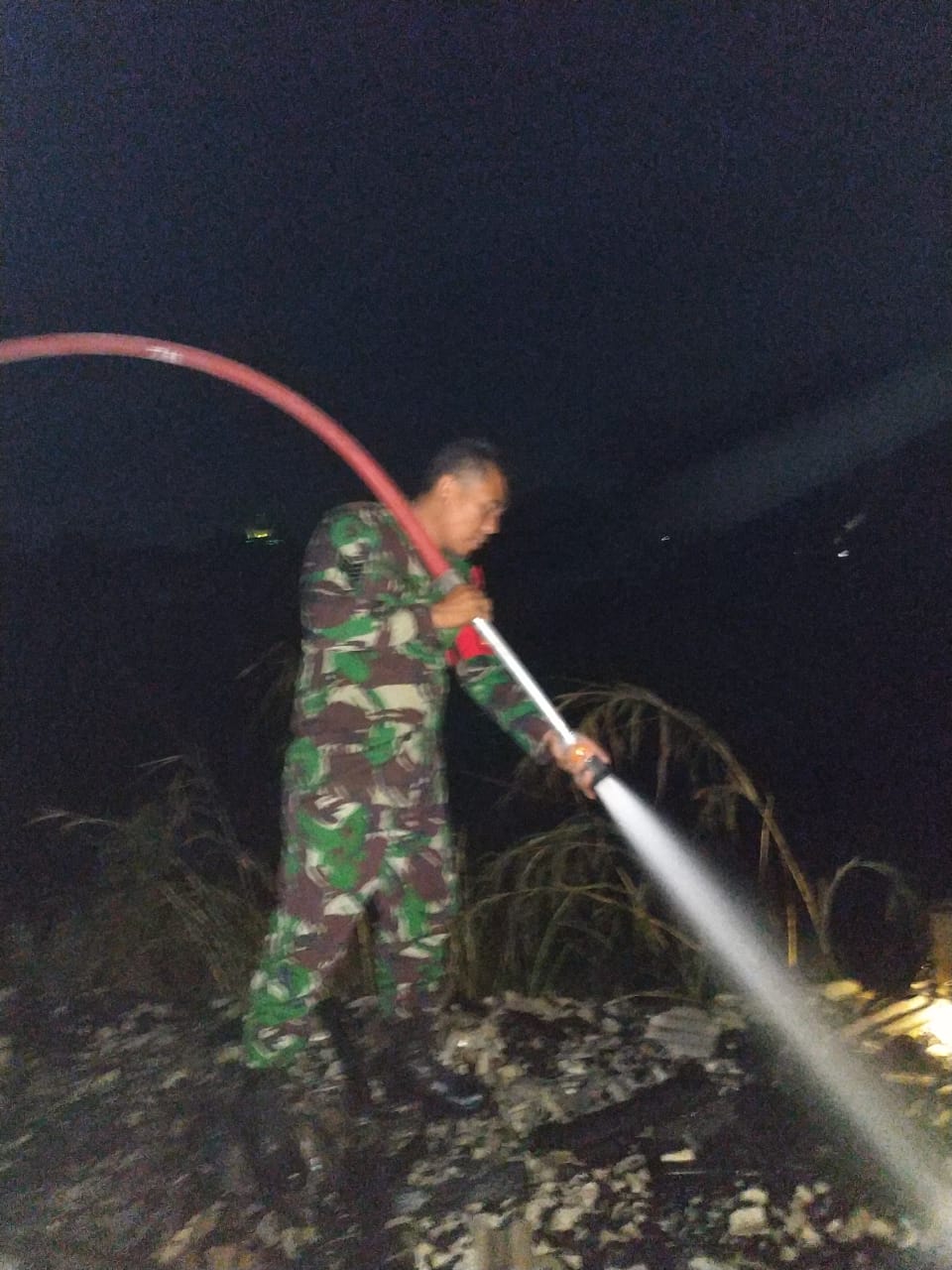 Babinsa Karangtengah Koramil 01/Sragen Serma Harun Yunianto bersama Damkar, BPBD dan warga melaksanakan Pemadaman Api dengan menggunakan mobil pemadam kebakaran serta menggunakan alat seadanya.
