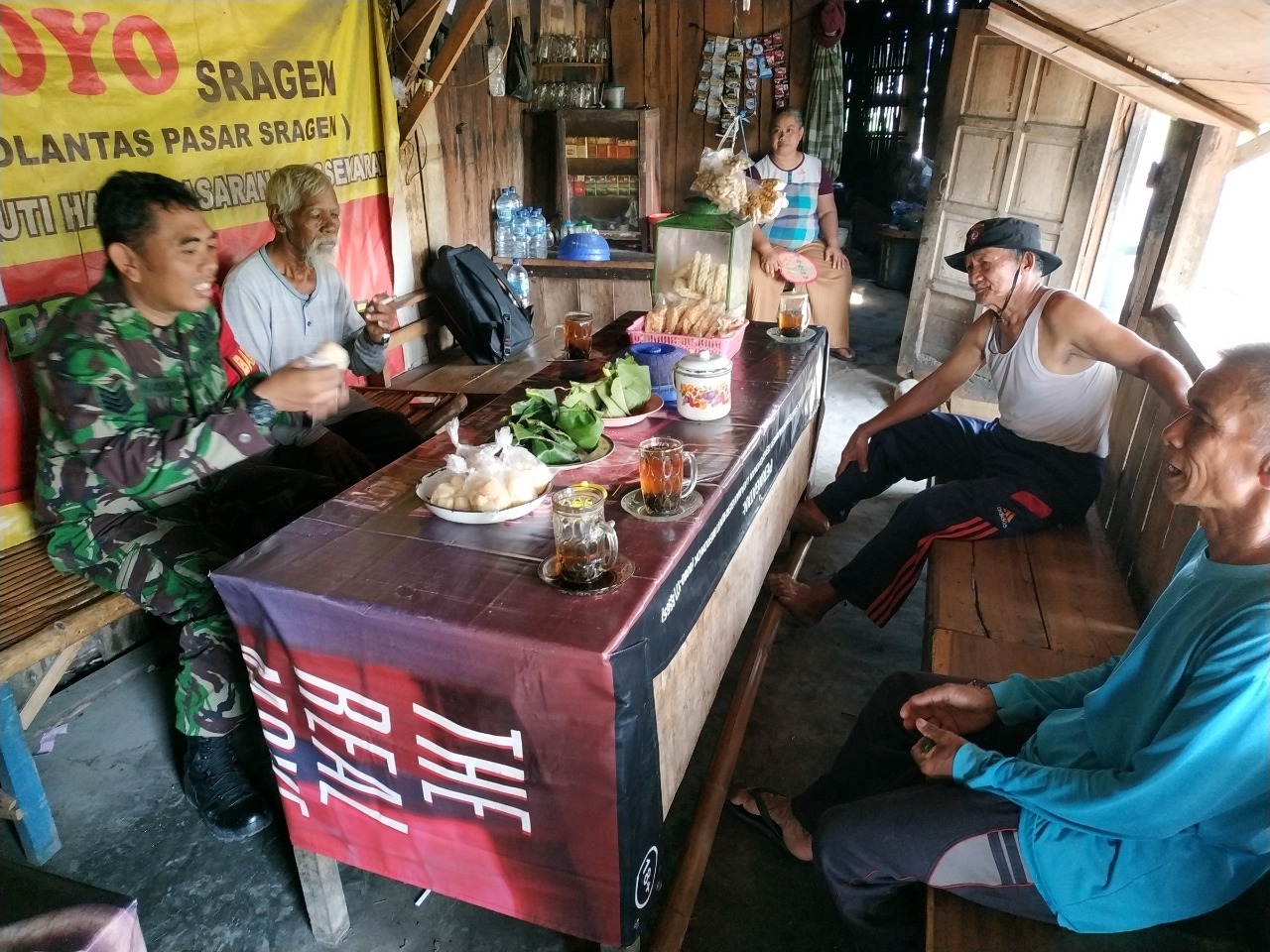 Senin, 30 Desember 2019 jam 09.15 s.d 10.00 Wib, Babinsa Karangtengah Koramil 01/Sragen Serma Harun Yunianto melaksanakan Komsos dengan Warga di Warung Suroto ( 54 ) di dk. Ngangin Rt 04/06, Kel. Karangtengah, Kec/Kab. Sragen.