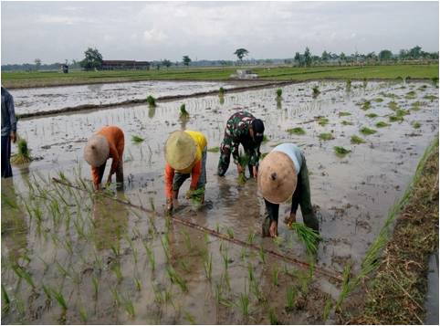 lahan sawah Bp Basuki ketua kelompok tani Utama Mapan alamat Dk.Kuyang RT.06 Ds.Pantirejo Kec.Sukodono Kab.Sragen Babinsa Pantirejo Koramil 13/Sukodono Kodim 0725/Sragen Serda
