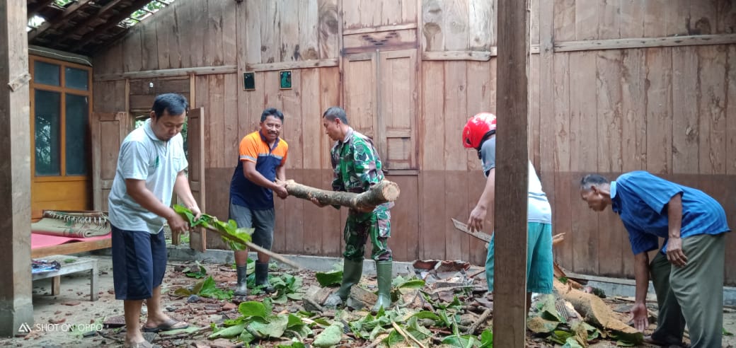 Babinsa Tunggul Serka Sutarno mengatakan, kerja bakti ini harus segera dilaksanakan, sebab pohon yang tumbang menimpa rumah Bapak Harso sangat membahayakan. “Rumah ini adalah tempat tinggal beliau bersama keluarganya, kalau tidak segera dibersihkan dan diperbaiki dikhawatirkan tidak bisa ditempati,”ungkap Serka Sutarno.
