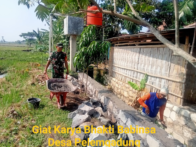 Seperti yang sudah dilakukan Sertu Sugeng Riyadi Babinsa Desa Pelemgadung Koramil 02/Karangmalang  Kodim 0725/Sragen melaksanakan giat Karya Bhakti di Dukuh Golong RT 26 Desa  Pelemgadung Kec. Karangmalang, Senin ( 13/11/2023 )