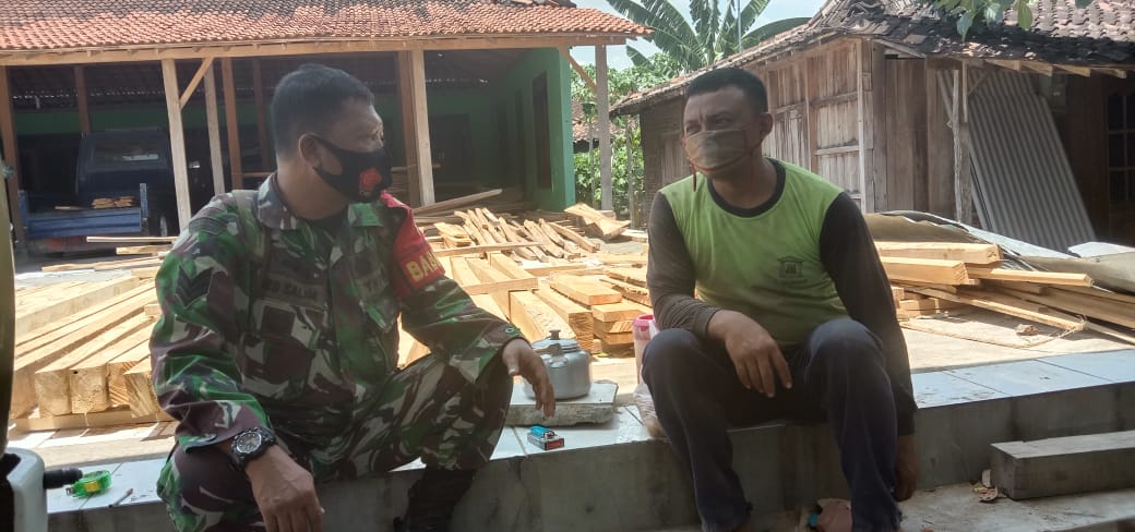 Minggu, 16 Mei 2021 Serka Abdus Salam Babinsa Desa Pengkok anggota Koramil 05/Kedawung melaksanakan kegiatan Komsos dengan Bp Samun pemilik Gergajian kayu dk.Randu Sari Rt 17 ds. Pengkok Kedawung.