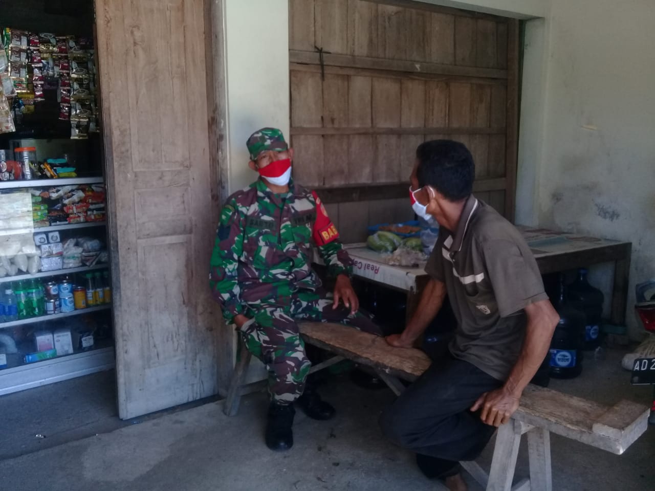 Jumat,  29 Mei 2020 Serma Sarto Babinsa Ds Brangkal Koramil-15/Gemolong melaksanakan kegiatan komunikasi sosial ( Komsos ) dengan Supratman warga dk garas kidul RT 12 .