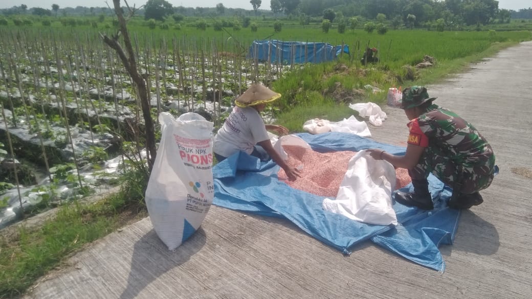 Babinsa Kel. Ngembat padas Kopda Agung Leksono anggota Koramil 15/Gemolong melaksanakan kegiatan pendampingan upsus memupukan padi jenis Ss dengan luas lahan ½ Ha di persawahan milik Sri lestari ( 42 ) Ds. Kalangan RT.18 Kel. Gemolong kec. Gemolong, Senin ( 16/12/19 ).