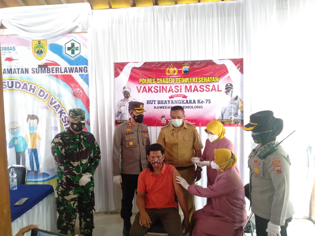 Dandim Sragen Letkol Inf Anggoro Heri Pratikno, S.IP mengatakan, kunjungan ini dilakukan untuk memastikan bahwa proses vaksinasi bisa dijalankan dengan baik. ” Salah satu yang kita harapkan bisa mewujudkan kekebalan komunitas dengan melakukan vaksinasi,” ujar Dandim.