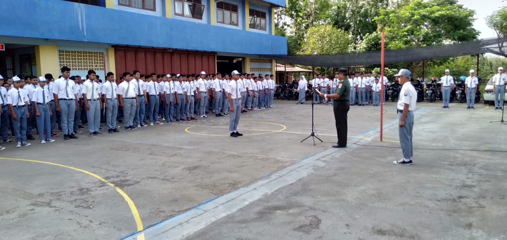 Danramil 16 / Miri Kapten Inf Kamalita menjadi Pembina Upacara di SMK Muh 5 Desa Soko Kec.Miri,Kab.Srg, yang dihadiri 320 orang, Senin ( 04/11/19 ).