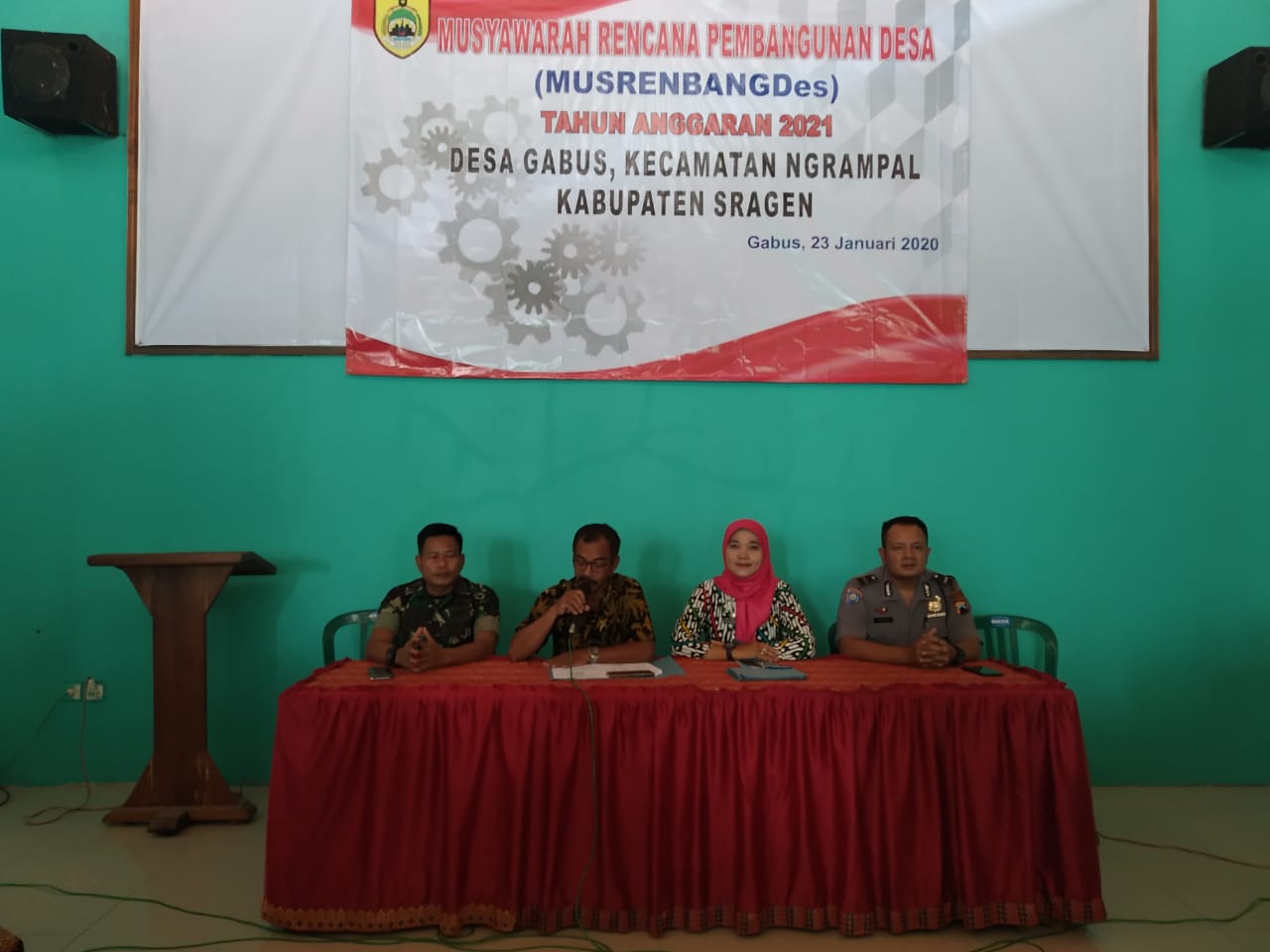 Kamis,23 Januari 2020 Pukul 10.00 wib s/d Pukul 11.00 Wib Batituud Koramil 07/ Ngrampal Peltu Sukardi menghadiri Undangan Musyawarah rencana pembangunan Desa. ( Musrenbangdes ) dalam rencana Ta. 2021 Bertempat di Aula Balai Desa Gabus.