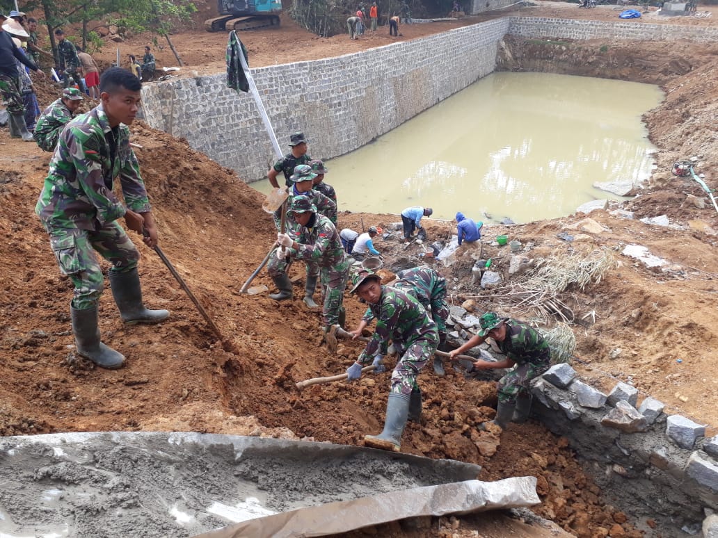 embung. Nampak puluhan Satgas TMMD dan masyarakat bekerja bersama sama