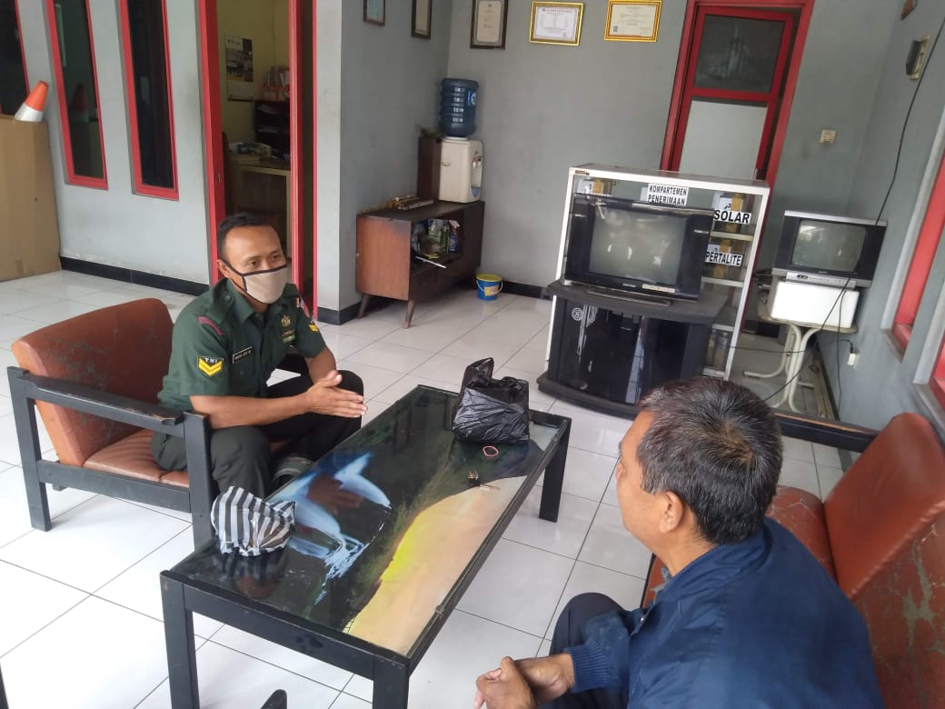 Rabu, 1 April 2020, pukul 10.15 – 11.00 wib, Sertu Mika melaksanakan komsos dengan petugas SPBU sine, jln Sukowati, Kel sine, kec/kab Sragen.