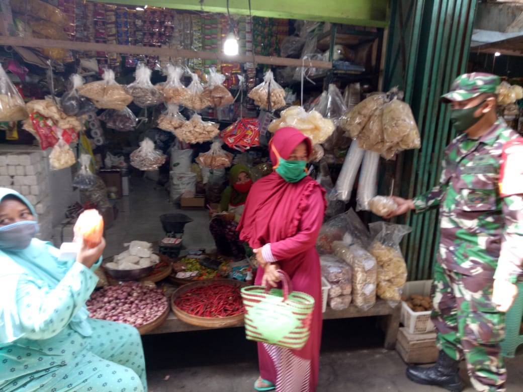Kamis, 13 Agustus 2020 pukul 08.30 – 09.00 Wib Serda Asih Wasito Babinsa Ds Karang Waru Ramil 20/Plupuh melaksanakan komsos dengan pedagang dan pembeli  Di pasar dkh pedak Rt 9 Ds karang waru.
