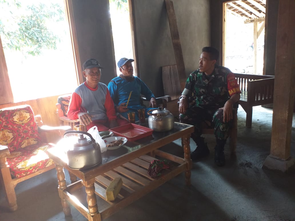 Senin, 22 Juli 2019. Serma Sumantep Darsono Babinsa Desa Jetiskarangpung Kec Kalijambe melaksanakan Komsos dengan Bp.Tugiman (Linmas)dan warga Dk.Bendo RT.17 Ds.Jetiskaranpung.