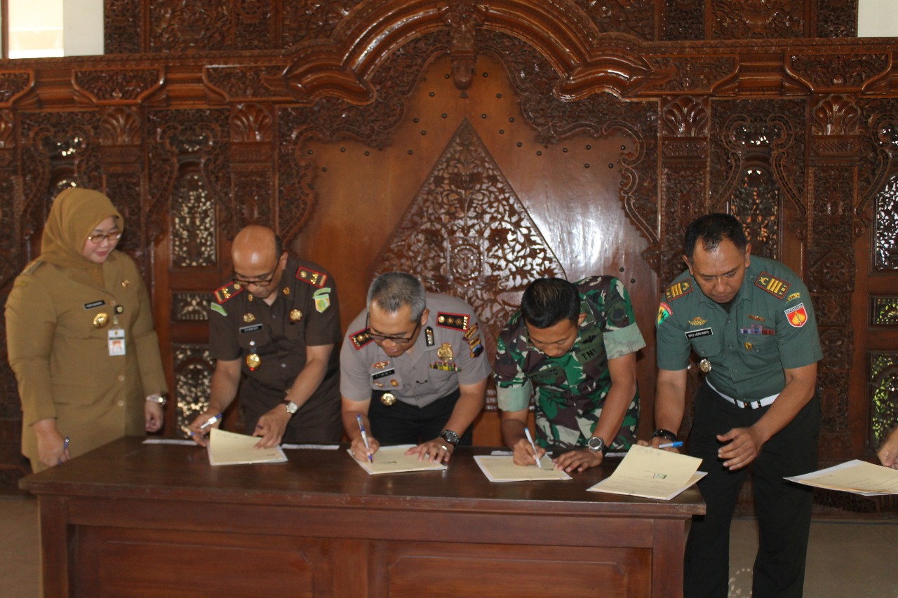 “Bahkan kami melibatkan tim sukses cakades dalam keanggotaan satgas di tingkat desa,” tuturnya. Di sisi lain, Bupati meminta aparat TNI/Polri harus netral dalam menyikapi pilkades. Kapolres Sragen AKBP Yimmy Kurniawan menyampaikan siap melaksanakan isi MoU.