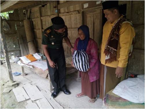 Jum’at, 8 Maret 2019 pukul 13.00 s.d selesai (Setelah Sholat Jum’at berjamaah) Danramil 13/Sukodono Kapten Arm Budiyanto,S.H.I didampingi Peltu Gilig Suprasto (Bati Tuud), Serma Suwardi (Bati Wanwil) Serda Heryawan (Babinsa Ds.Gebang) Serda Sujadi (Babinsa Ds.Majenang), Sertu Noer Amin (Babinsa Ds.Jatitengah) Serda Sugijanto (Babinsa Newung) dan Bpk Samin (Bayan I Pakel) melaksanakan kegiatan Bakti Sosial pemberian paket sembako kepada warga kurang mampu, Ibu Rukiyem (82), Dk. Pakel RT 01 Ds. Gebang Kec.Sukodono Kab.Sragen.