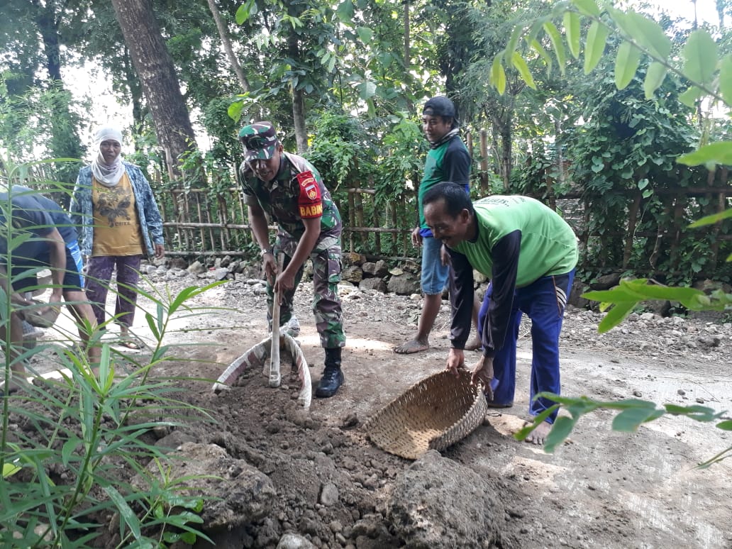 Senin, 6 januari 2020. Pkl 09.00 wib s/d selesai, Sertu Saryono Babinsa Desa Wonotolo melaksanakan karya bakti pengecoran dan pembereman jalan, di Dukuh kleco rejo Ds. Wonotolo Kec. Gondang.