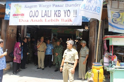 Suasana semarak terlihat di pintu masuk pasar bunder Sragen,Selasa 23 Oktober 2012. Tak seperti biasa, pagi itu sepanjang pintu masuk terlihat barisan pedagang yang stand by dengan rapi. Sekitar Pukul 08.00 Wib, rombongan iring – iringan mobil pun mendarat di areal parkir pasar induk terbesar di bumi Sukowati itu. Sambutan hangat pun langsung terlihat dari kerumunan pedagang ketika satu per satu pejabat penting keluar dari mobil. Dibagian depan, tampak Deputi Advokasi Kantor Pusat Badan Koordinasi Keluarga Berencana Nasional ( BKKBN ), kemudian diikuti rombongan dari BKKBN Provinsi Jateng dan Bupati Sragen Agus Fatchur Rahman, Wabup Sragen Daryanto, Dandim Letkol Inf R. Wahyu Sugiarto, S.IP, Kajari Gatot Gunarto dan Pejabat Muspida lainnya mengiringi di belakang. Ya, kemarin Kab. Sragen kembali kedatangan tamu istimewa dari kantor pusat BKKBN RI. Rombongan yang dipimpin Deputi Advokasi , Hardiyanto itu sengaja bertandang ke sragen untuk menengok ” Program KB Grebek Pasar ” yang digulirkan Pemkab Sragen.