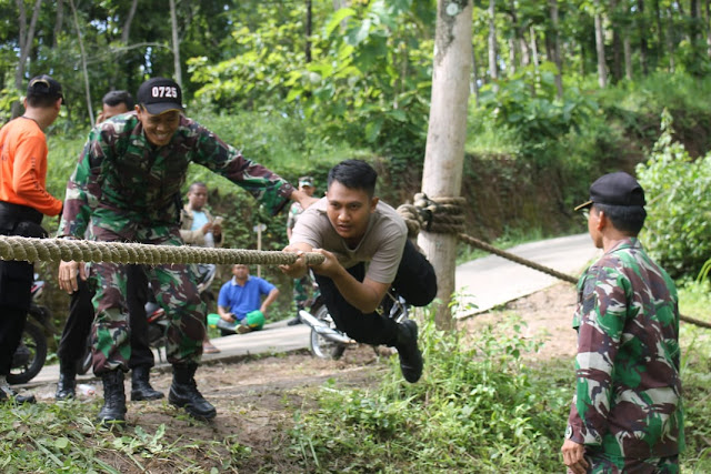 Adapun materi yang di latihkan adalah pengenalan alat pengaman snepling, turun tebing atau refling, tali temali, cara memasang tali tubuh dan lain lain. Ada 4 rintangan yang disiapkan oleh Pelatih dari Kodim Sragen untuk dilewati oleh peserta latihan diantaranya Rayapan tali 1, Jembatan tali 2, jaring pendarat dan Parsopak (Lempar pisau lempar Kapak).