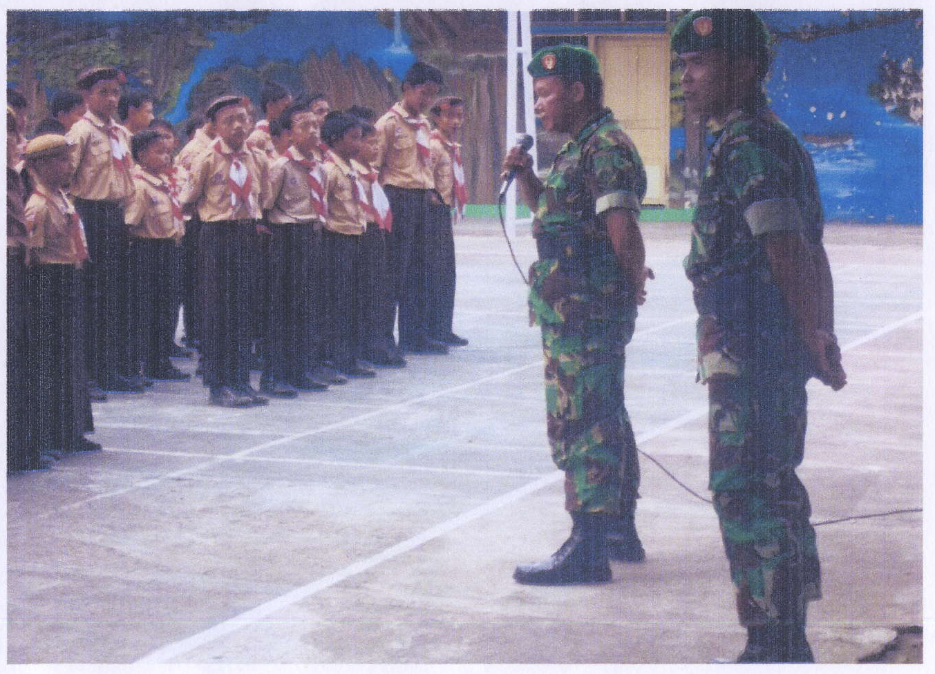 Koramil 03/Masaran yang diwakili 2 orang anggota Babinsa Serma Sudadi dan Sertu Waryono melaksanakan pembinaan pramuka di SMP N 1 Masaran Pada Hari Jum’at Tanggal 24 Februari 2012 dan diikuti 64 orang siswa-siswi Kelas VII SMP N 1 Masaran. Materi yang disampaikan antara lain tentang pembentukan sikap dan disiplin melalui latihan PBB dan PPM serta rasa cinta terhadap tanah air. Kegiatan Bin pramuka tersebut merupakan implementasi dari Program kerja Kodim 0725/Sragen TA 2012 bidang teritorial tentang pembinaan pramuka.