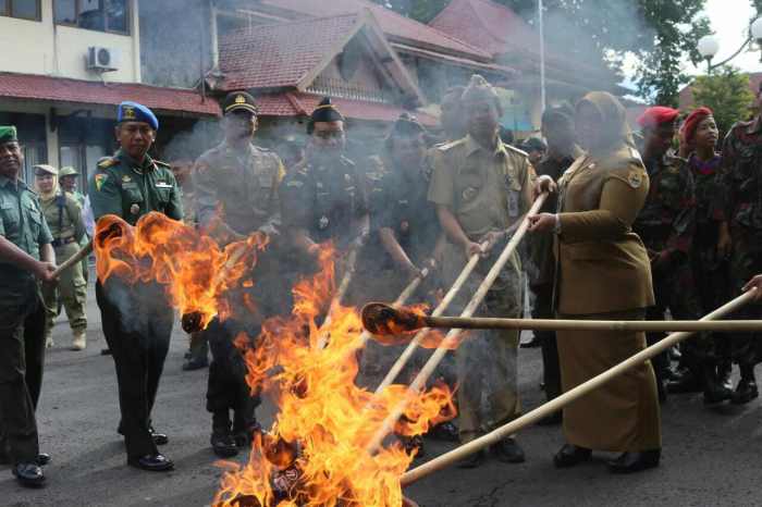 Membahayakan, 9.000 Rokok Bodong dan Ratusan Miras Dibakar di Depan Kantor Bupati Sragen