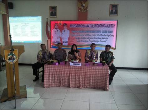 Rabu, 3 Februari 2019, pukul 09.00 s.d selesai bertempat di Aula lantai II Kecamatan Sukodono Kab.Sragen Danramil 13/Sukodono Kapten Arm Budiyanto,S.H.I bersama Bpk Riyadi Guntur Rilo Subroto,S.Sos (Camat Sukodono) dan Iptu Sutomo (Wakapolsek Sukodono) menghadiri MUSRENBANG Kec. Sukodono dalam rangka penyusunan RKPD tahun 2020 dengan tema “perwujudan kualitas SDM yang cerdas, sehat dan berdaya saing dengan kualitas pelayanan dasar yang memadai guna mendukung pengembangan Ekonomi” di hadiri lk 70 orang.
