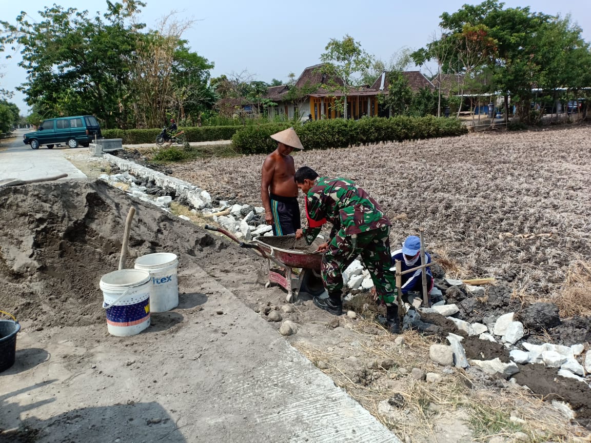 Babinsa Desa Bandung Sertu Sugiyono melaksanakan kegiatan Karya Bakti membantu masyarakat dalam Pembangunan Talud sepanjang 200 meter di Dk. Kretek RT. 02, Desa Bandung, Rabu ( 16/10/19 ).