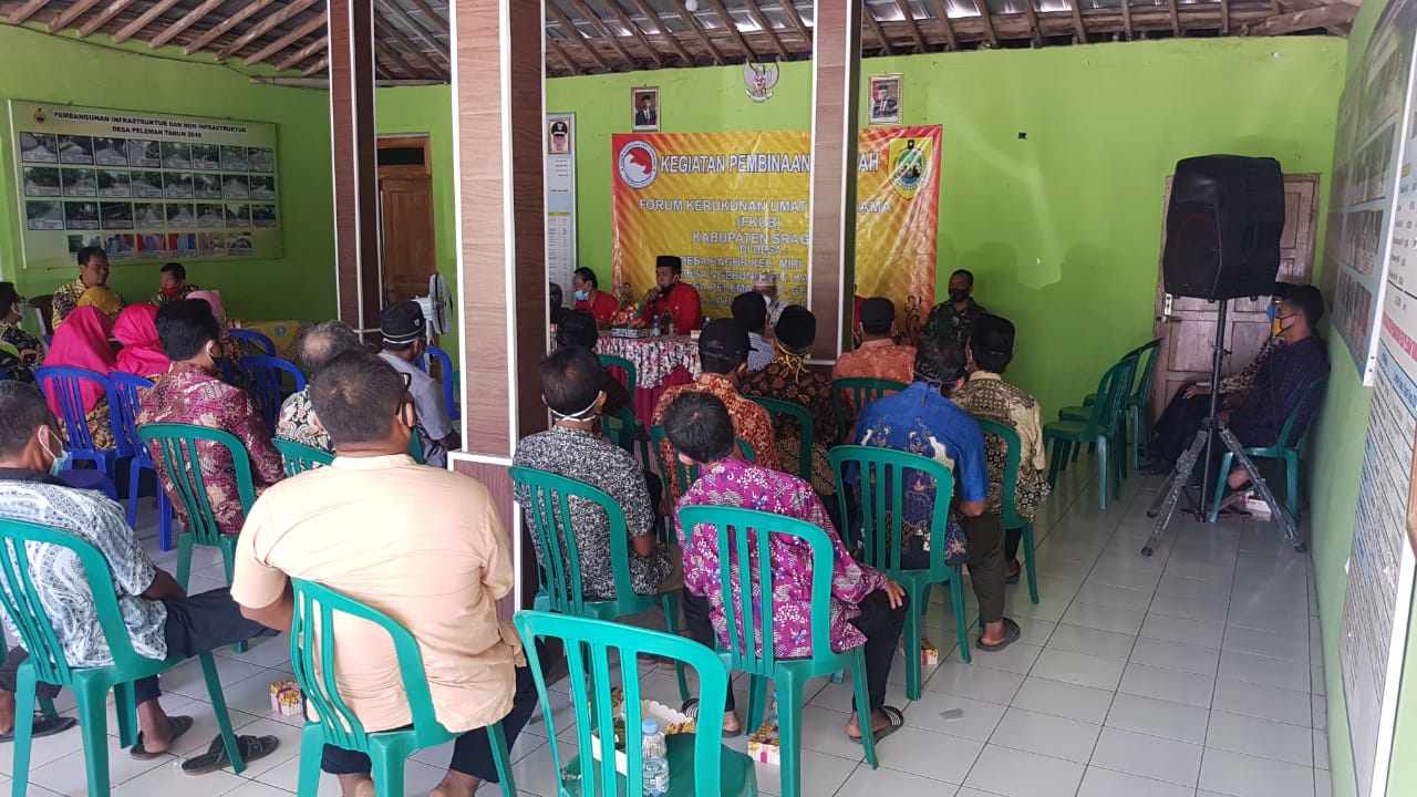 Rabu, 30 September 2020 pukul 09.00 – 10.30 Wib Serka Suripan Babinsa Ds.Peleman menghadiri kegiatan Pembinaan Forum Kerukunan Umat Beragama (FKUB) Kab. Sragen bertempat di Aula Kantor Desa Peleman.