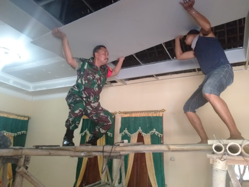 Rabu, 10 Juli 2019 Pukul 09.00 Wib Sertu Sarman Babinsa Desa Blimbing anggota Koramil 08/Sambirejo melaksanakan kegiatan karbak membantu pasang plafon/pasang gipsum di rumah Sunarto ( 38 ) dk salam Rt 14, ds Blimbing.