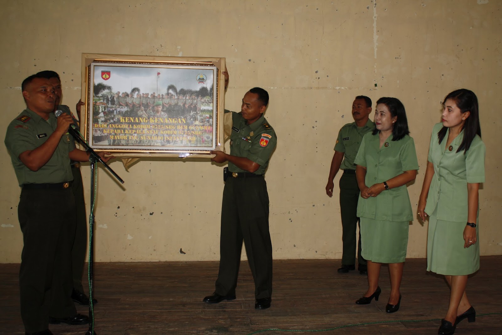 Keluarga Besar Kodim 0725/Sragen menyelenggarakan Acara Penghantar Tugas Kasdim 0725/Sragen pada Hari Kamis tgl, 22 Maret 2012 di Gedung Kartini Sragen. Kegiatan yang dipimpin langsung oleh Dandim 0725/Srg Letkol Inf. R. Wahyu Sugiarto.S.IP diikuti oleh seluruh Prajurit, PNS Kodim 0725/Srg dan Persit KCK Cab. XLVI ini dalam rangka menghantarkan Tugas Pendidikan Kepala Staf Kodim 0725/Srg Mayor Inf. Sunardi Istanto SH yang akan mengikuti pendidikan Seskoad di Bandung.   Dalam sambutannya Dandim 0725/Srg atas nama pribadi dan Satuan menyampaikan ucapan selamat atas kelulusan Seskoad Kasdim dan terima kasih atas dedikasi dan pengabdiannya selama menjabat Kasdim 0725/Srg, selanjutnya Dandim juga seluruh warga Kodim 0725/Sragen mendo’akan semoga Mayor Inf. Sunardi Istanto diberikan keselamatan, kekuatan dan kesuksesan dalam melaksanakan pendidikan Seskoad. Acara dilanjutkan dengan pemberian kenang-kenangan dari anggota kodim dan Para Perwira Kodim 0725/Srg.