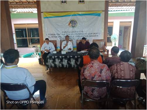 Rabu, 6 Februari 2019 bertempat di Pendopo Kantor Desa Baleharjo Kec.Sukodono Kab.Sragen, Sertu Rohmad Babinsa Ds Baleharjo Koramil 13/Sukodono bersama Bpk Gunarto (Kepala Desa Baleharjo) dan Brigadir Agus Sunarto (Bhabinkamtibmas) menghadiri Sosialisasi PTSL ( pendaftaran tanah sistematis lengkap ) dari Dinas Pertanahan Kab. Sragen anggaran 2019 di hadiri 97 orang antara lain Bpk Joko Nugroho Aptnh MM dari BPN Kab. Sragen beserta team, Perangkat Desa Baleharjo Tokoh agama dan Tokoh masyarakat Desa Baleharjo.