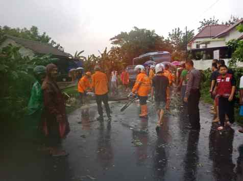 desa yang terdampak terjangan angin. Tumbangnya pohon menyebabkan jalan macet