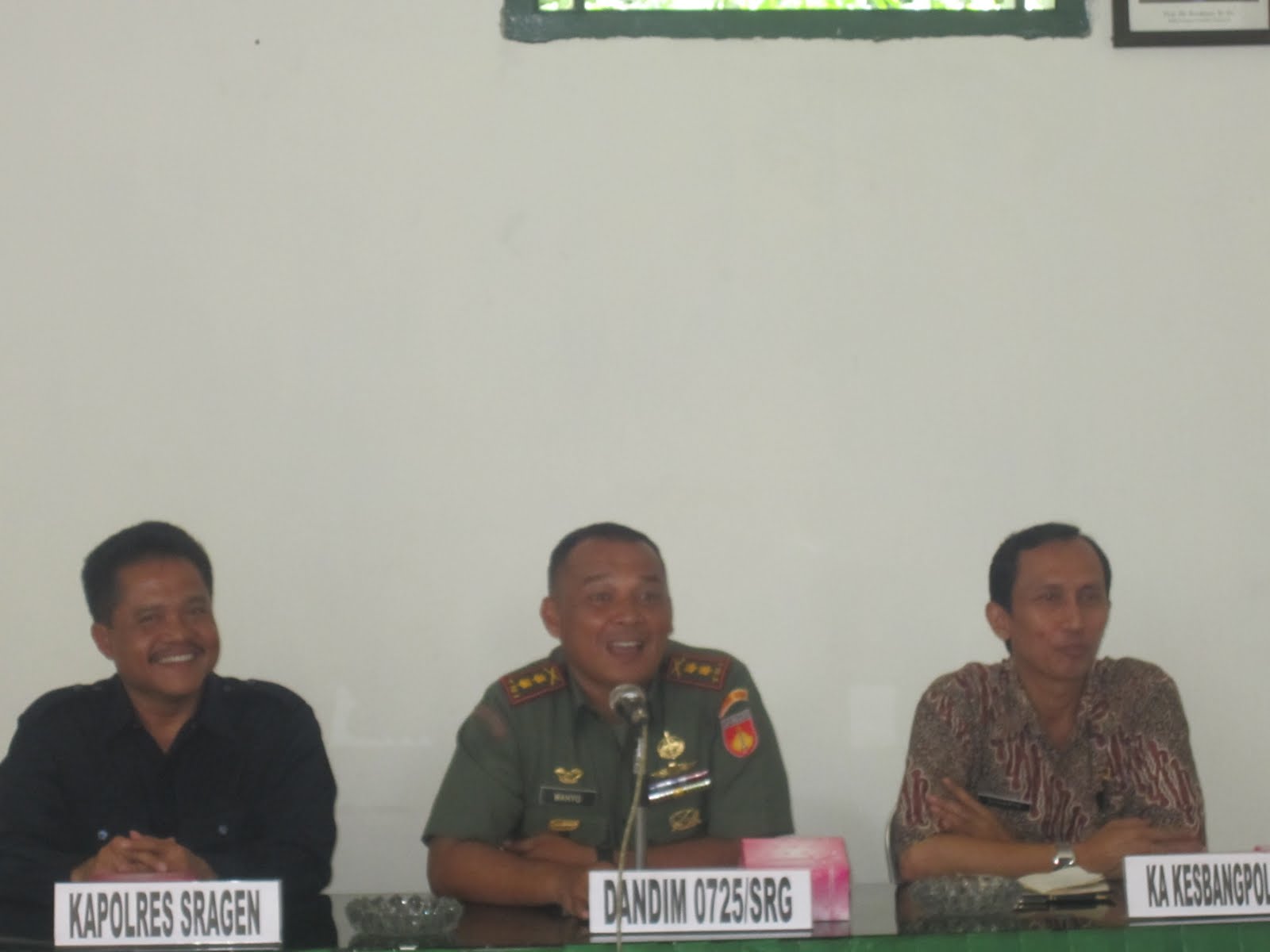 Dandim 0725/Sragen Letkol Inf. R. Wahyu Sugiarto S.IP menghadiri Rakor persiapan muscab PPM Ka. Sragen di Aula Barak Sukowati Pada Hari Kamis Tanggal 15 Maret 2012 Pukul 09.30 s/d Selesai. Rakor persiapan muscab PPM tersebut dihadiri Unsur FPD antara lain, Kapolres Sragen, Kesbangpolinmas Pemkab. Sragen, Ketua LVRI Kab. Sragen, Ketua PPM Kab. Sragen, Dewan Paripurna dan Ketua Ranting PPM Se-Kabupaten Sragen. Dalam Forum Rakor tersebut disepakati pembentukan kepanitiaan dalam rangka Muscab yang akan dilaksanakan pada Tanggal 03 April 2012 pukul 08.00 Wib di Kantor LVRI Kab. Sragen. Tujuan diadakan Rakor persiapan Muscab tersebut untuk meningkatkan persatuan dan kesatuan dalam rangka terwujudnya organisasi PPM kedepan lebih solid dan lebih maju.