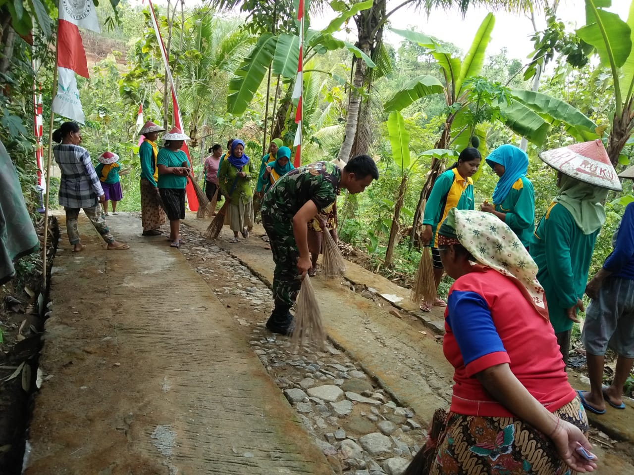 membersihkan jalan, hal ini rutin dilakukan setiap hari Sabtu oleh warga Desa