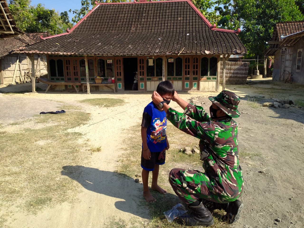 Satgas TNI Manunggal Membangun Desa (TMMD) Kodim 0725/Sragen, membagikan masker secara geratis kepada masyarakat. Pembagian masker tersebut berlangsung di Desa Gebang  Kecamatan Sukodono, Sragen.