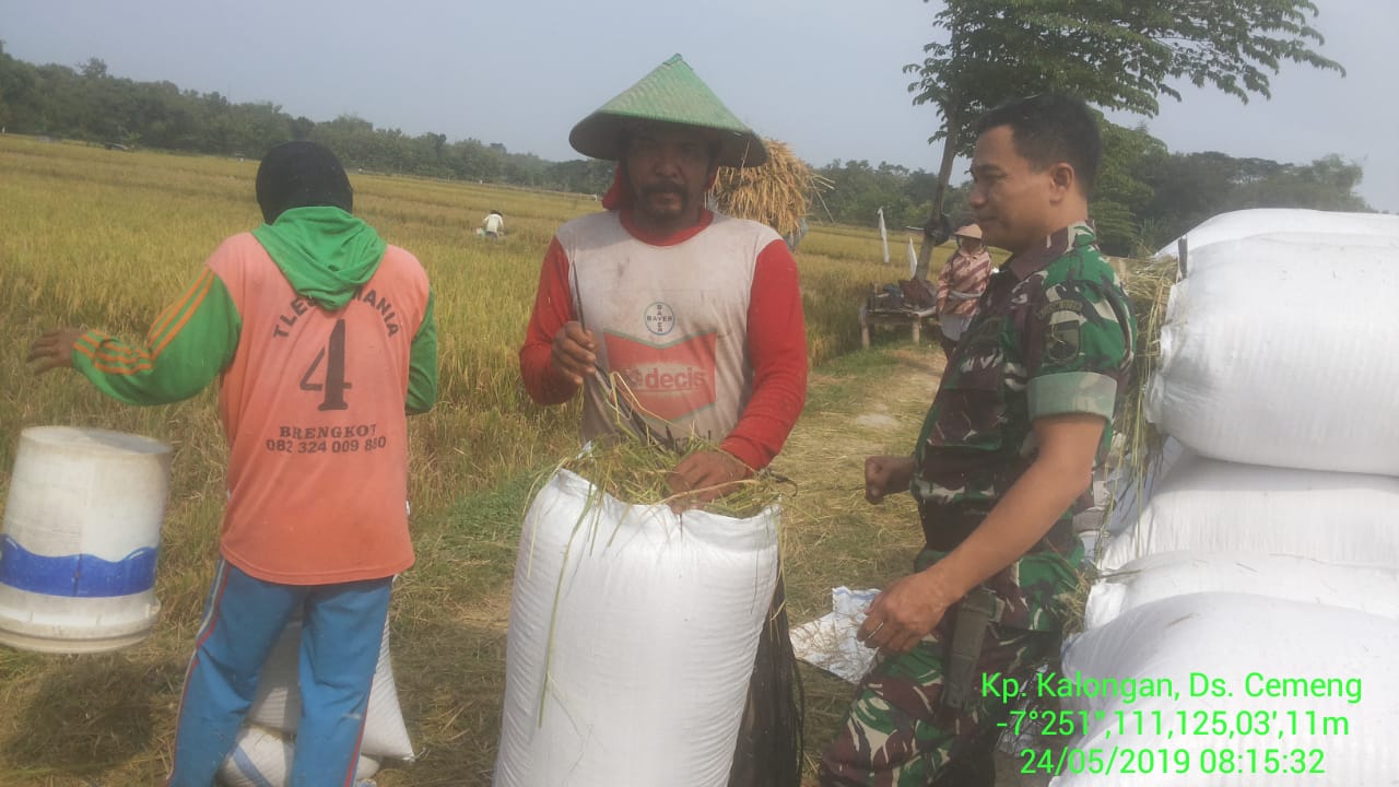 Jumat, tgl 24 Mei 2019 Pukul 08.30 Wib – selesai Serda Wiyono Babinsa Desa Cemeng Anggota Koramil 09/Sambungmacan melaksanakan kegiatan pendampingan Upsus dengan sasaran mendata luas siap panen dan luas yg sudah panen di wilayah Ds. Cemeng.