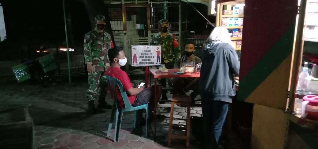 Kodim Sragen Tegakkan Prokes Covid-19, Babinsa Koramil Karangmalang Pantau Kerumunan Warga