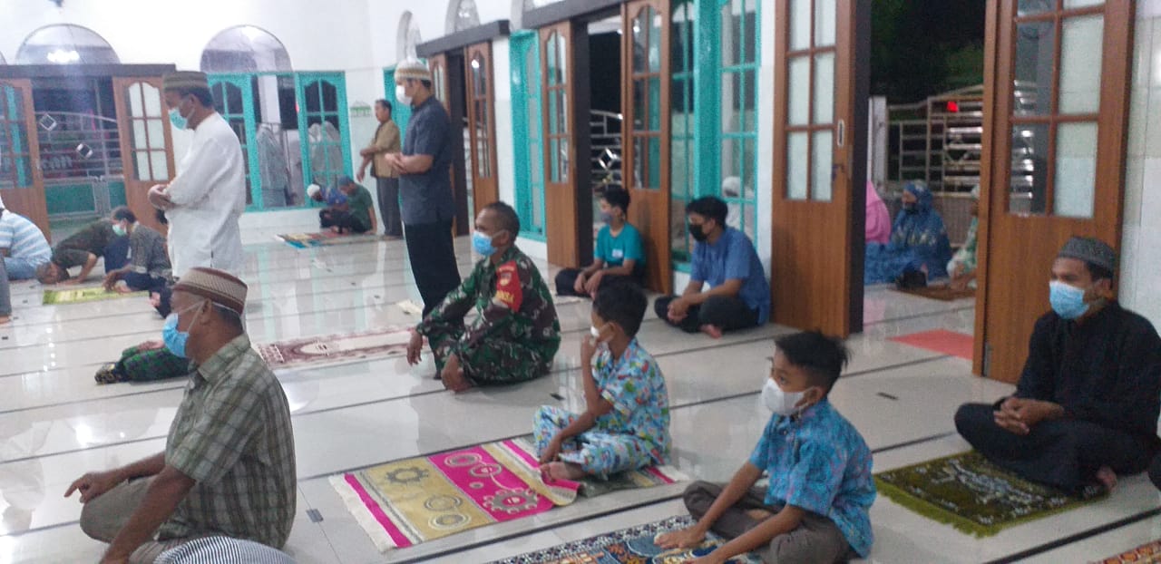 Kodim Sragen – Tetap Patuhi Protokol Kesehatan Babinsa Kroyo Shalat Tarawih Bersama Masyarakat