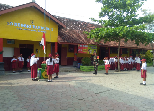 Senin, 5 Nopember 2018 pukul 07.00 s.d selesai, Sertu Sugiyono Babinsa Desa Bandung Koramil 07/Ngrampal melaksanakan kegiatan menjadi Irup upacara Bendera Merah Putih di SDN 1 Bandung yang diikuti kurang lebih 114 Orang